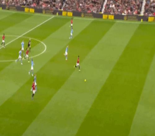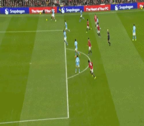 第10分钟,罗德里分球左路,多库变向突破,达洛特踹到对手的膝盖,但裁判手下留情,仅出示黄牌警告,曼联逃过红牌。